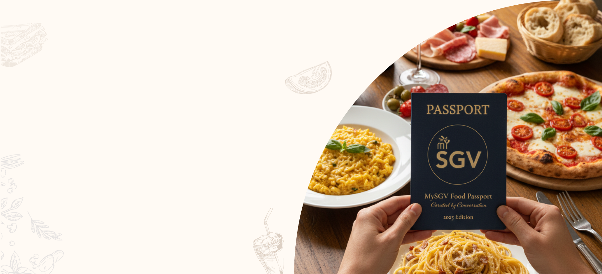 The MySGV Food Passport is a curated guide, stamp and discount book for the best, locally-owned shops in the San Gabriel Valley. The MySGV Food Passport is a curated guide, stamp and discount book for the best, locally-owned shops in the San Gabriel Valley.